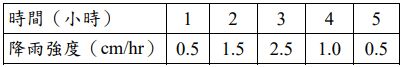 ⑴試求該集水區,在 1 小時有效降雨延時下的單位歷線。(10 分)