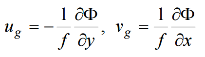二、已知 p 坐標之地轉風方程向量式與其 x、y 分式為: