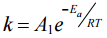 = 碰 撞頻率因子(collision frequency factor)或指數前項因子(pre-exponential factor), R = 氣體常數,T = 絕對溫度,E