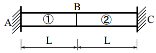 一、如圖所示之兩端固定的桿件,由二種材料組成,其斷面相同,斷面積為A。材料①之彈 性模數(elastic modulus)為E