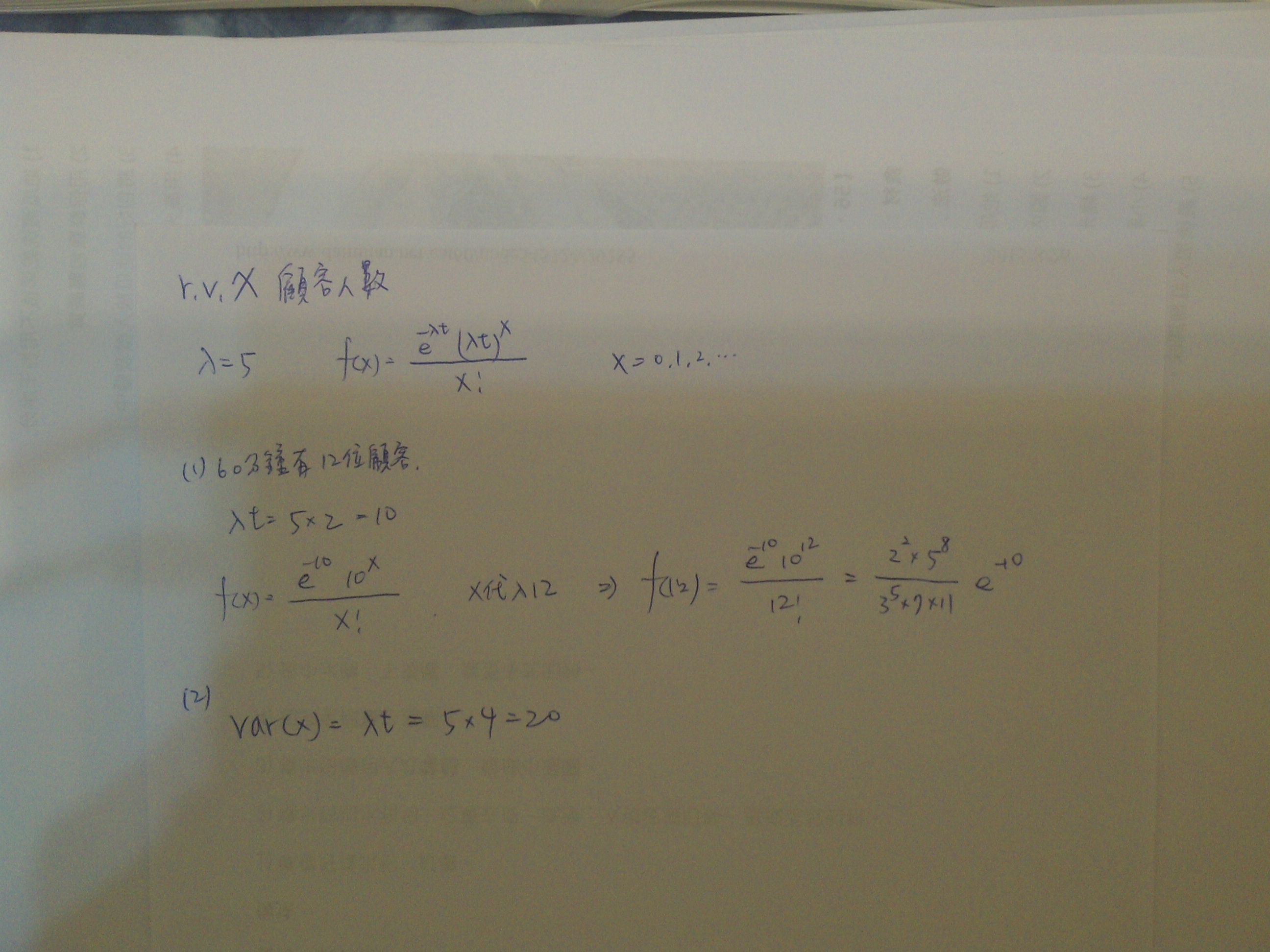 ⑵在兩小時內的顧客平均數,變異數為何?(8 分)