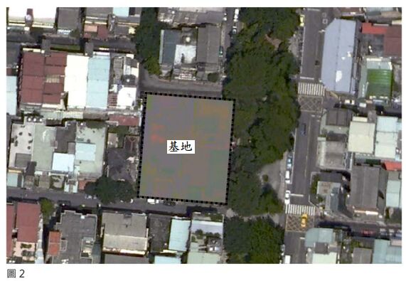 3.基地面積 1,116 m2 ,位於住宅區內,使用分區為「住三」(容積率 225%,建蔽率 45%)。「住三」是都市內常見的住宅使用分區,當其基地面臨 8m(含 8m)以 上道路時,底層可以經營服飾、餐飲、書店等(見圖 2)。