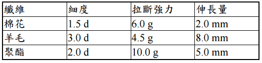 一、以一般紡織用纖維為試樣,拉力試驗條件為: