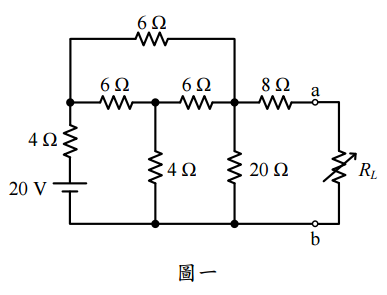 一、一電路如圖一所示,其中,接在 ab 端的負載電阻 R
