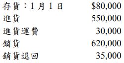 80000+550000+30000-期末存貨=(620000-35000)*80%
