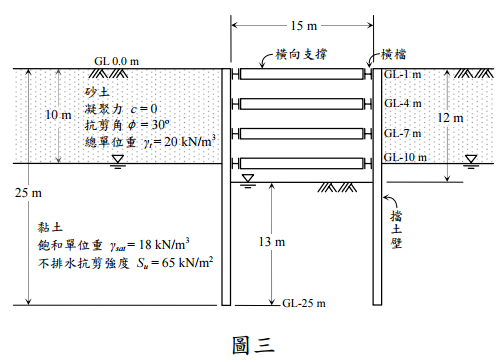 三、某建築工地進行開挖,如圖三所示之開挖剖面: