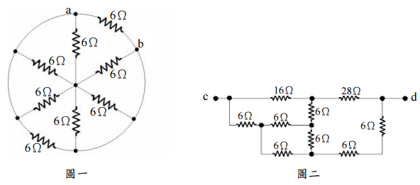 ⑵試求圖二中 c,d 兩點間之等效電阻。(10 分)