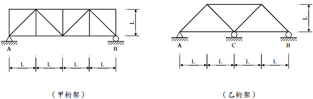 ⑵ 若乙桁架 B 支承之基礎沉陷 0.05 mm,則各桿件受力為何?(15 分)