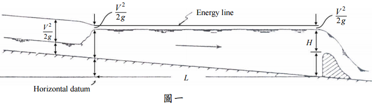 二、有一明渠流系統,如圖一所示。矩形渠道渠寬 B=3.05 m,曼寧糙度 n=0.017,輸送 流量 Q=11.32 cms,渠道坡度 S