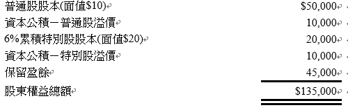 該公司之特別股清算價格為$25,贖回價格為$31,已積欠特別股股利$15,000(含本年度)。 試計算