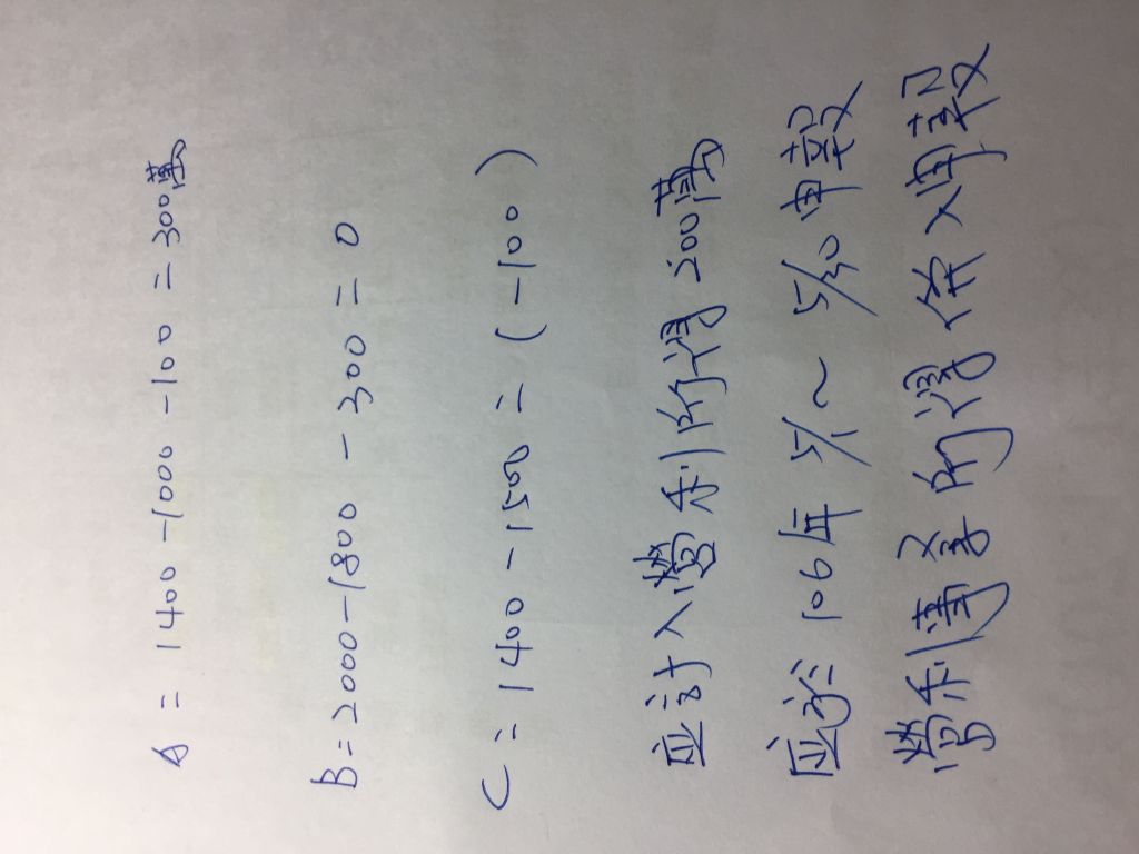 A房地 房地所得 1400-1000= 400萬 營利所得 400 - 100= 300萬