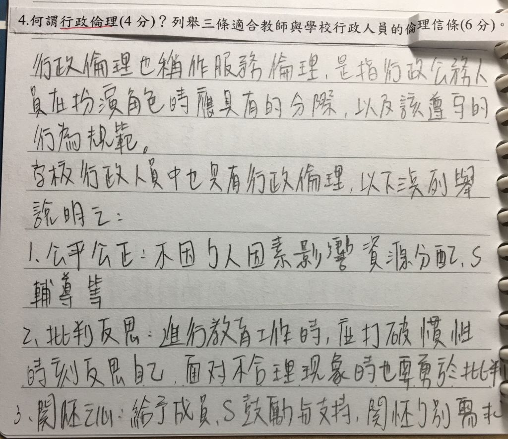 一、教育行政人員從事行政實踐時面臨兩難問題的機會很多,如何做出倫理決定?請舉 例說明您的做法。(25 分)