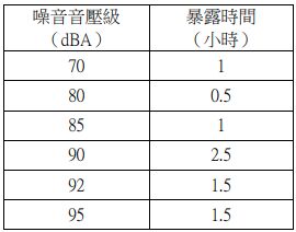 某鑄造廠之勞工 A 每日工作 8 小時,均暴露於穩定之連續性噪音,經量測其作業 2 小時的暴露劑量為 20%;另勞工 B 每日作業時間暴露噪音之音壓級與時間如下表。請回答下列問題: