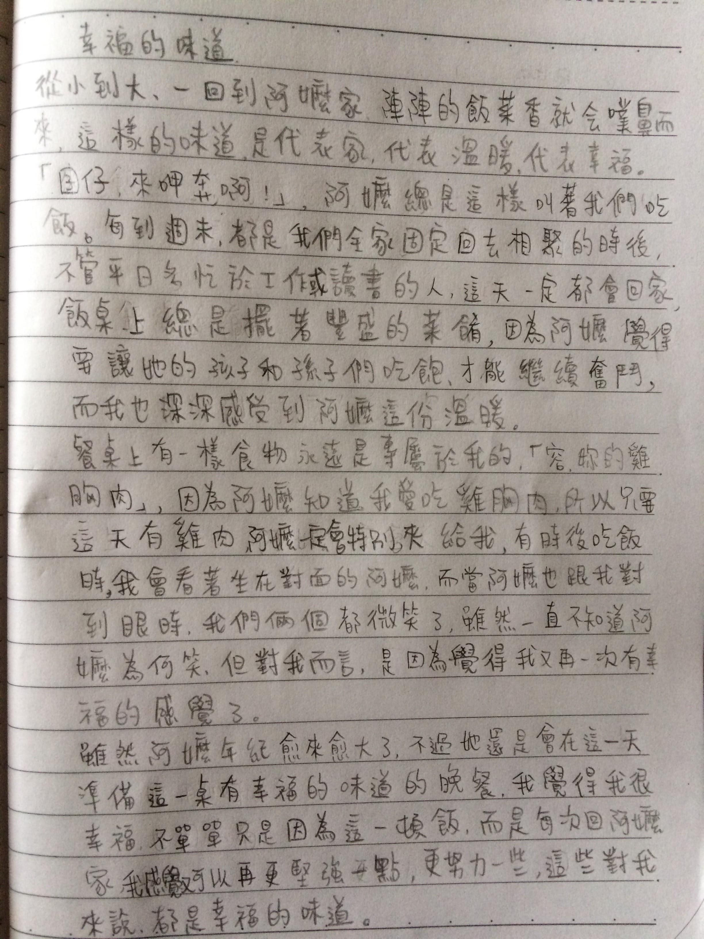 三、作文(50分) 試以「幸福的味道」爲題作文一篇,文言白話不拘,不得以新詩形式寫作。