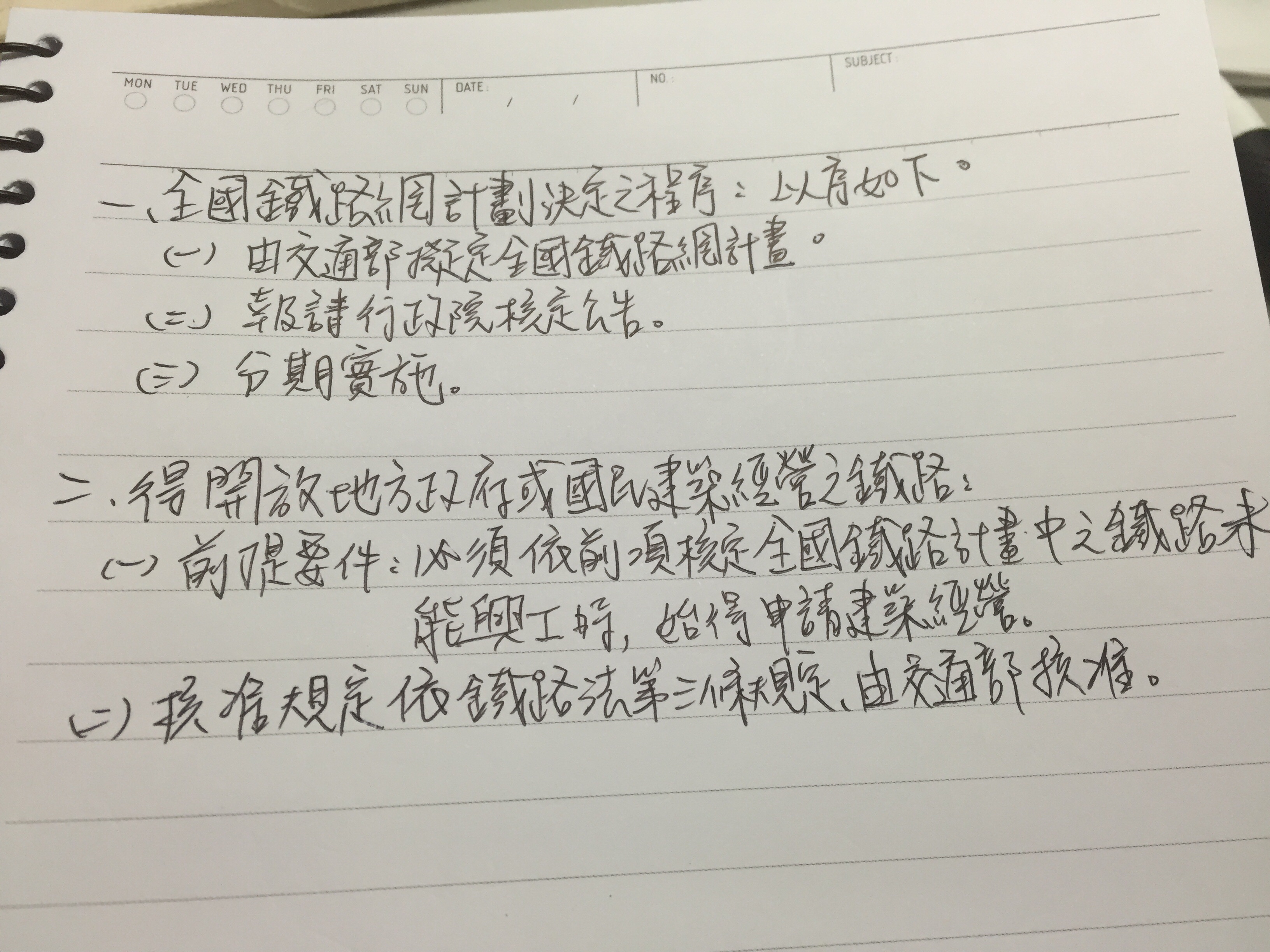 三、全國鐵路網計畫之訂定程序為何?就已核定之鐵路路線,地方政府或國民若欲建築 經營之,其前提條件與核准規定各為何?(25 分)