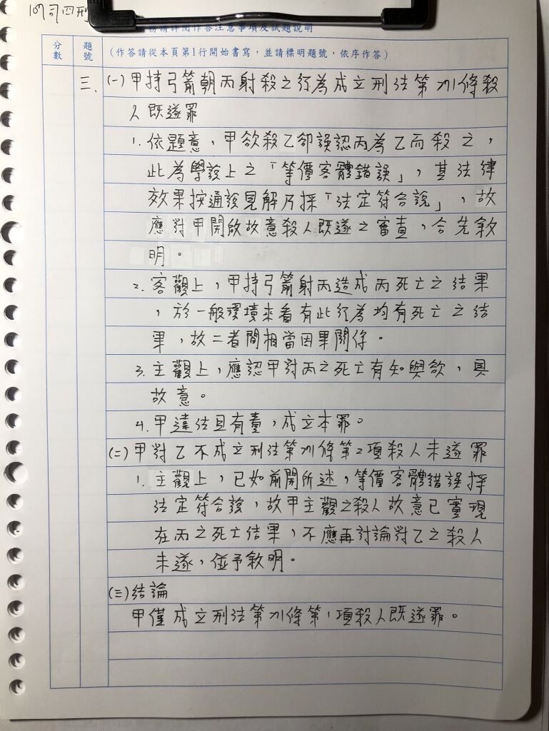 2.影響說:因為判斷錯誤 應發生之結論為對乙之殺人未遂 對甲丙之過失致死罪 在依想像競合犯 從一重處斷 論行為人故意殺人未遂罪