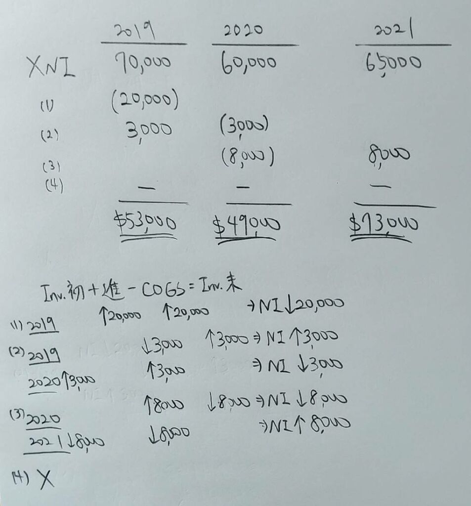 2.2019年12月31日有一筆寄銷品存貨$3,000,因置放他人商店寄賣,不在倉庫之中,故盤點時未記錄