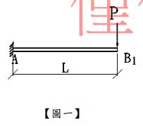 二、(1)如【圖一】所示之懸臂梁,自由端施加一集中載重P,則B點撓角及撓度為何?