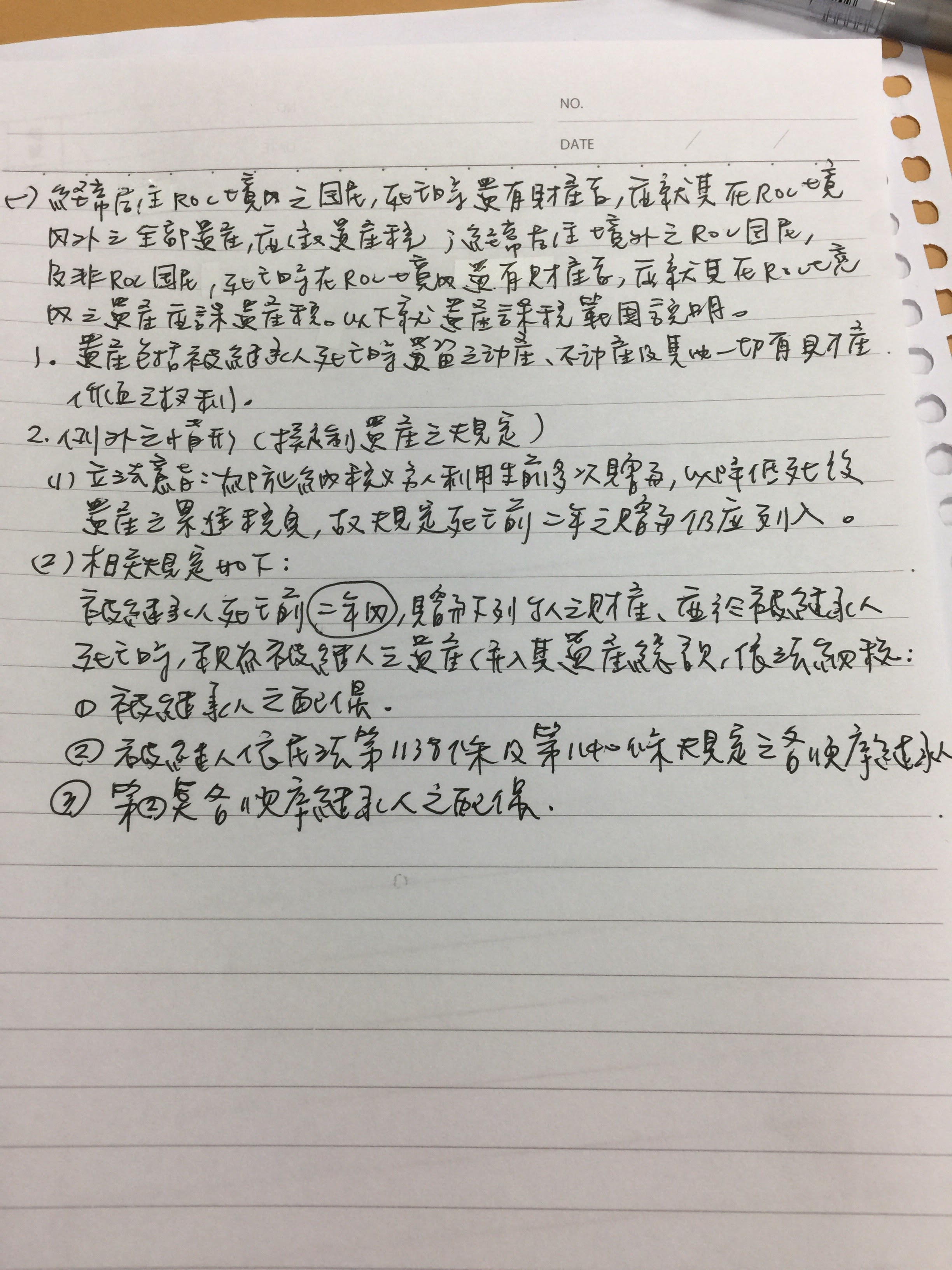 3.視同遺產:死亡事實前兩年內對配偶、民法1138及1140條之繼承人或上述繼承人之配偶所為之贈與