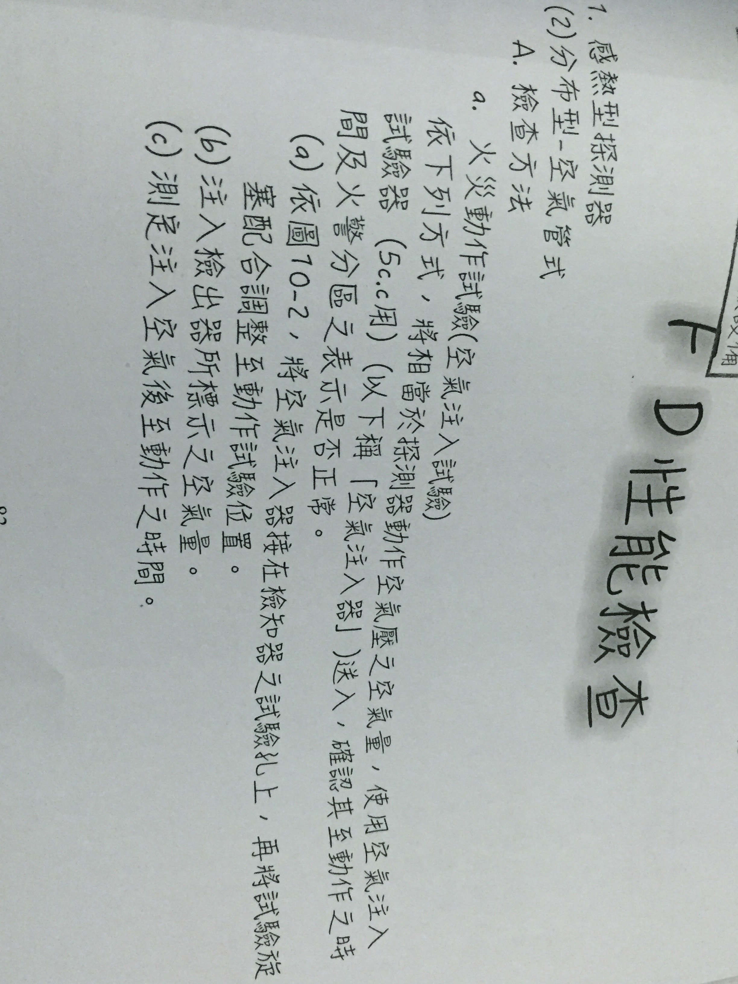 二、依檢修基準規定,差動式分布型空氣管式探測器之「性能檢查」項目及步驟為何? 試說明之。(25 分)