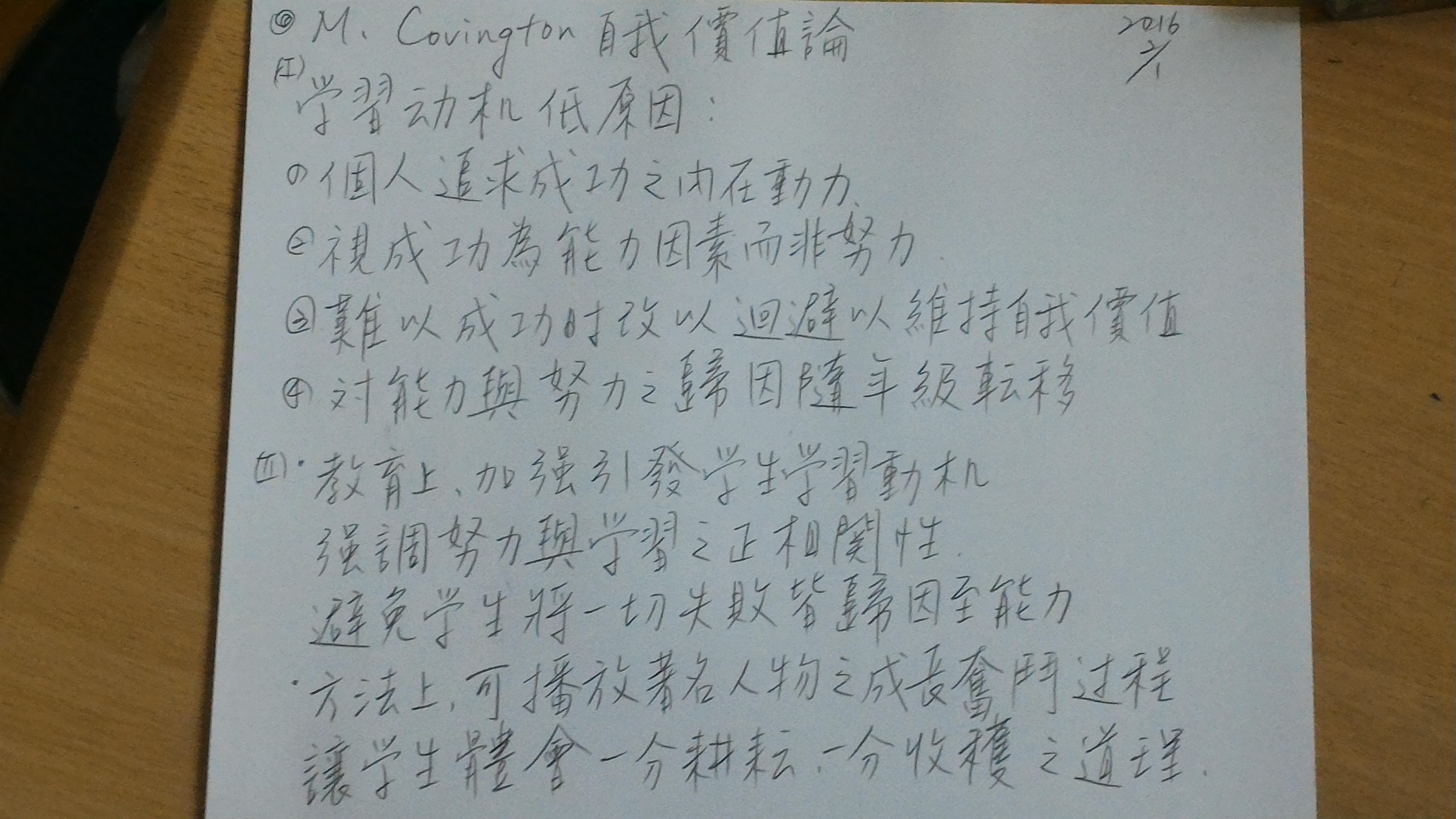 卡芬頓的自我價值理論說明學生學習動機低落的原因為因成功不易追求,學生傾向以逃避失敗來維護自己的自我價值。 1.協助適當的歸因 將成功歸因為能力,將失敗歸因為努力不足。 2.給予學生適當的成功經驗 因材施教,對不同的學生給予不同的要求標準,被適時給予學生成功的經驗。 3.對學生有適當正面的期待 利用比馬龍效應,對學生有適當的正面期望,使其追求自我價值。 4.利用多元評量 採用多元評量的方式,讓學生嶄露自己的優點與長處。