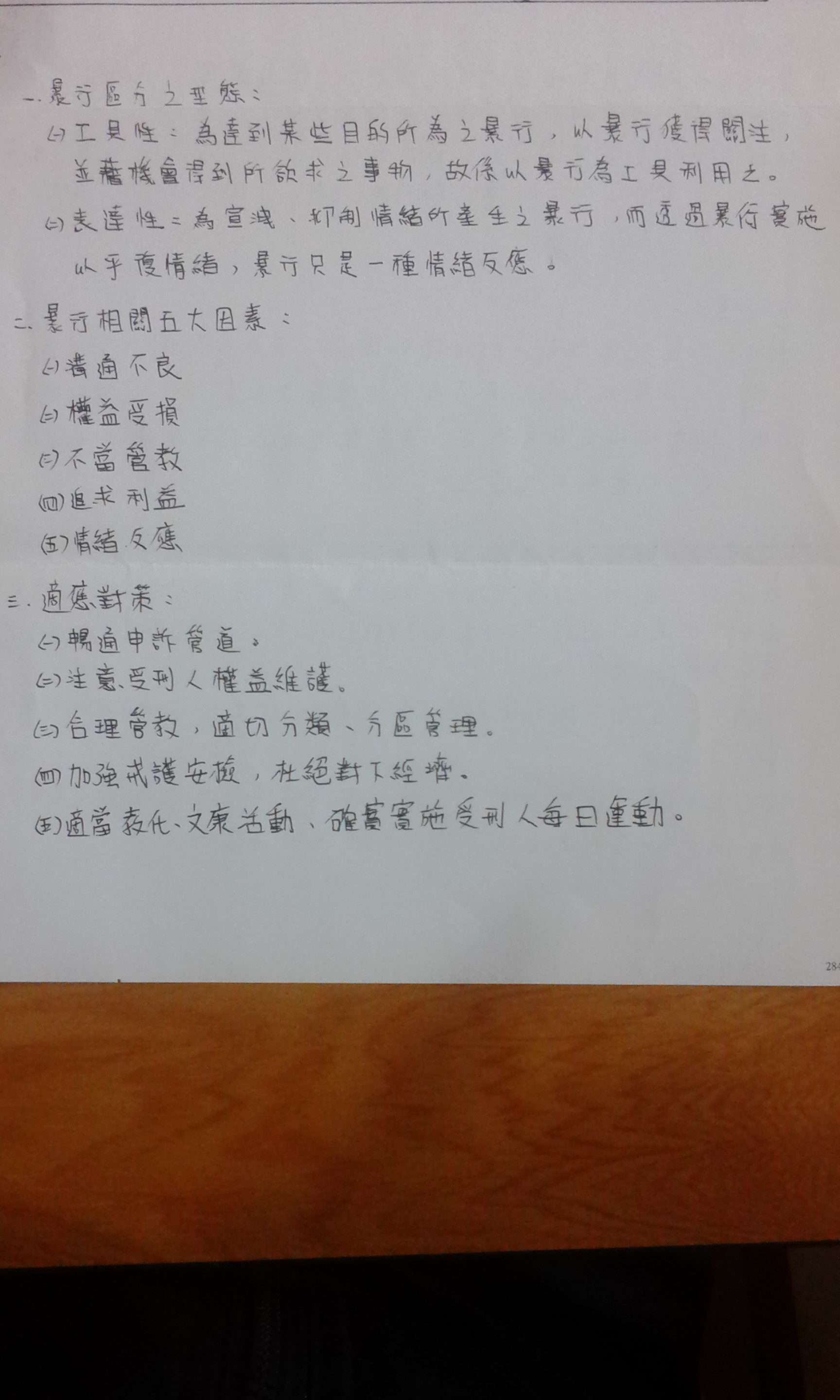 二、美國監獄學家伯克(Bowker, 1985)曾於「監獄暴行」(Prison Violence)一文中將 受刑人的暴行區分為那兩種型態?根據其研究,受刑人發生暴行,與那五大因素息 息相關?並請據以提出適切對策以為因應。(25 分)