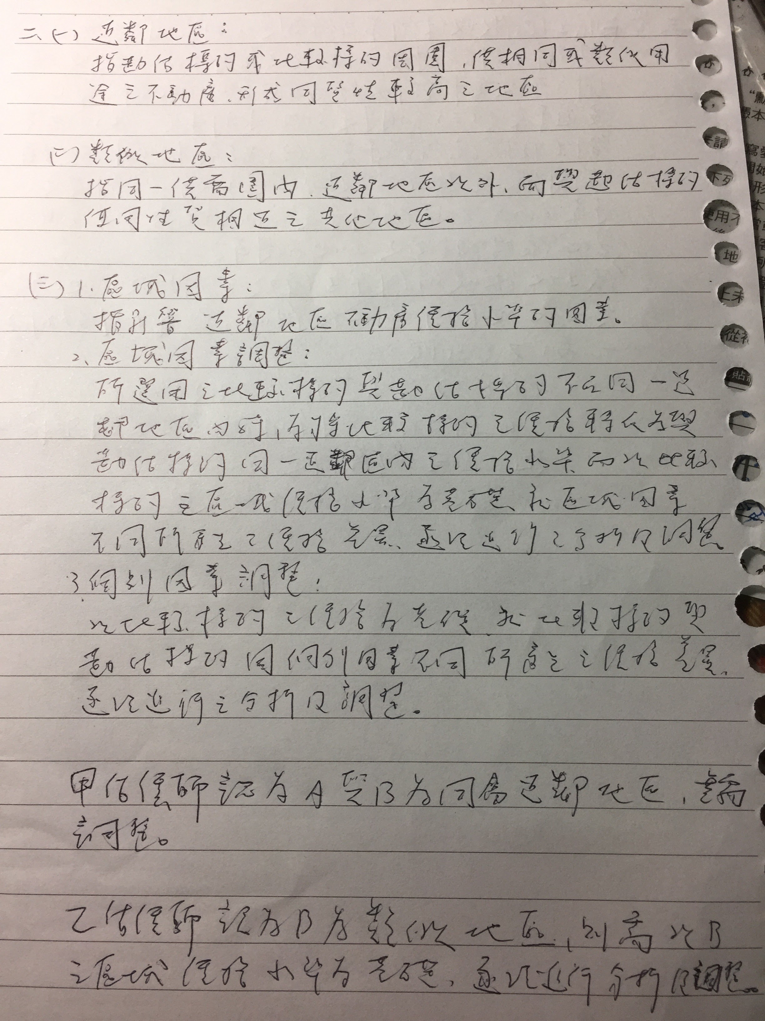 四、何謂「近鄰地區」?何謂「類似地區」?當勘估標的「A」距離高鐵車站 100 公尺, 比較標的「B」距離高鐵車站 1200 公尺,甲不動產估價師認為 A 與 B 均同屬「近 鄰地區」,而乙不動產估價師認為 B 為「類似地區」,請問兩人在撰寫報告時,如 何就「高鐵車站」之關係,於區域因素分析及區域、個別因素之調整方面有何不同 之內容?(25 分)