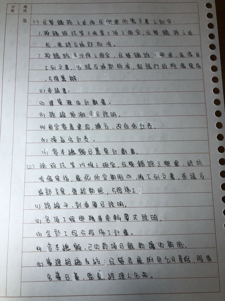 (一)須交通部核准之文書(地方營、民營鐵路興建之應被文書)