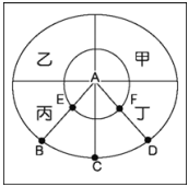 *右圖中,A 為 90°N,外圈為赤道,內圈為 80°N, 角 BAC=角 CAD,角 BAD 為 80°,請回答以下問題: