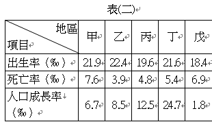 3.表(二)為五個地區的部分人口資料。請問: