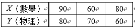 四、 計算題 (每題10分,共2題) 1. 某生 3 次的數學及物理考試成績如下表所示: