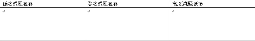 說明紅血球在低滲透壓溶液、等滲透壓溶液、高滲透壓溶液中,血球型態會如何改變??(6分)