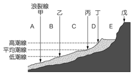 (三)下圖是海岸地帶的地形剖面圖。請問:
