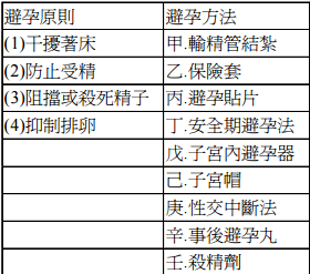3. 以下請就避孕原則配對所有可能的避孕方法,請以代號回答。