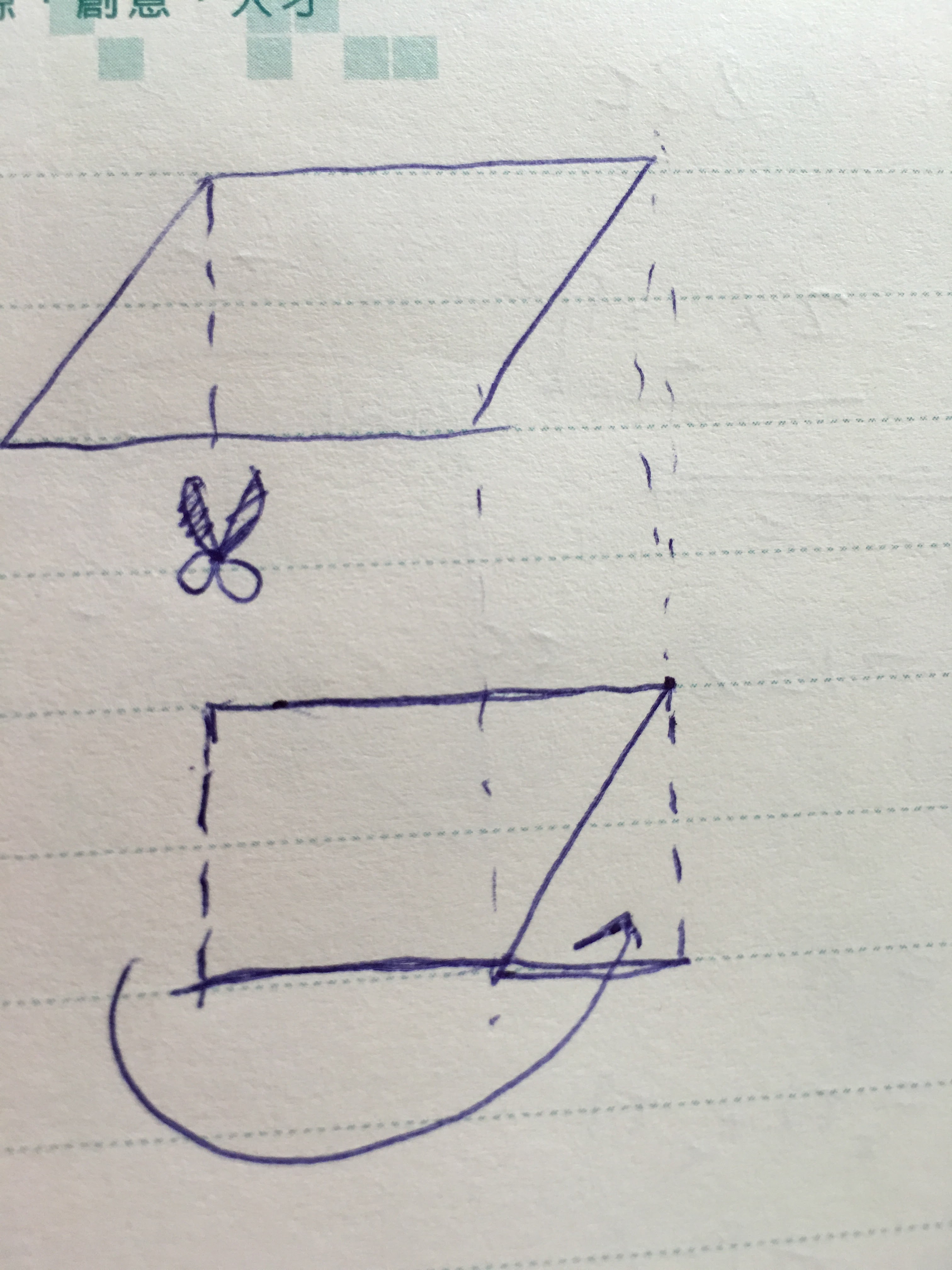 因為將剪下來的平行四邊形拼出來的形狀是長方形