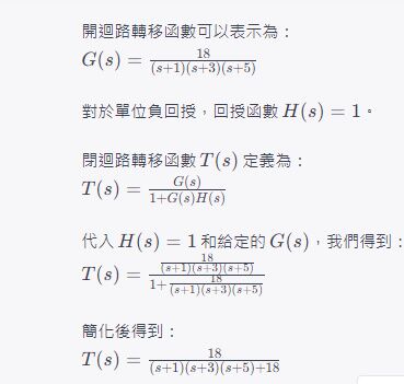 第三題: 新釀製之葡萄酒之控制系統之轉移函數有三個極點-1,-3,-5,且其線性增益值為18