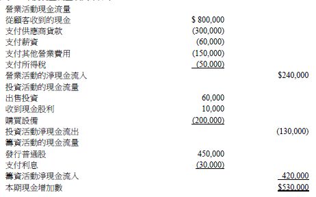 1.與營業活動相關資產負債變動: 應收帳款增加 $80,000 應付帳款減少 $20,000 備抵呆帳增加 10,000 存貨增加 48,000