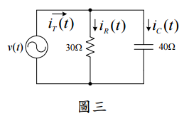 四、圖三所示交流電路中,電源電壓的瞬時表示式為 v(t ) = V