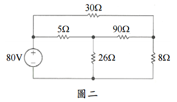 四、如圖二所示之電路。試求:
