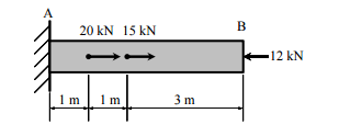一、一根 5 公尺長的鋼材圓棒(E = 190 GPa)受軸向力 20 kN、15 kN、12 kN,如下圖 所示,該圓棒的截面積為 2000 mm