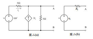 二、圖二(a)所示之直流電路可以簡化為圖二(b)的等效電路。