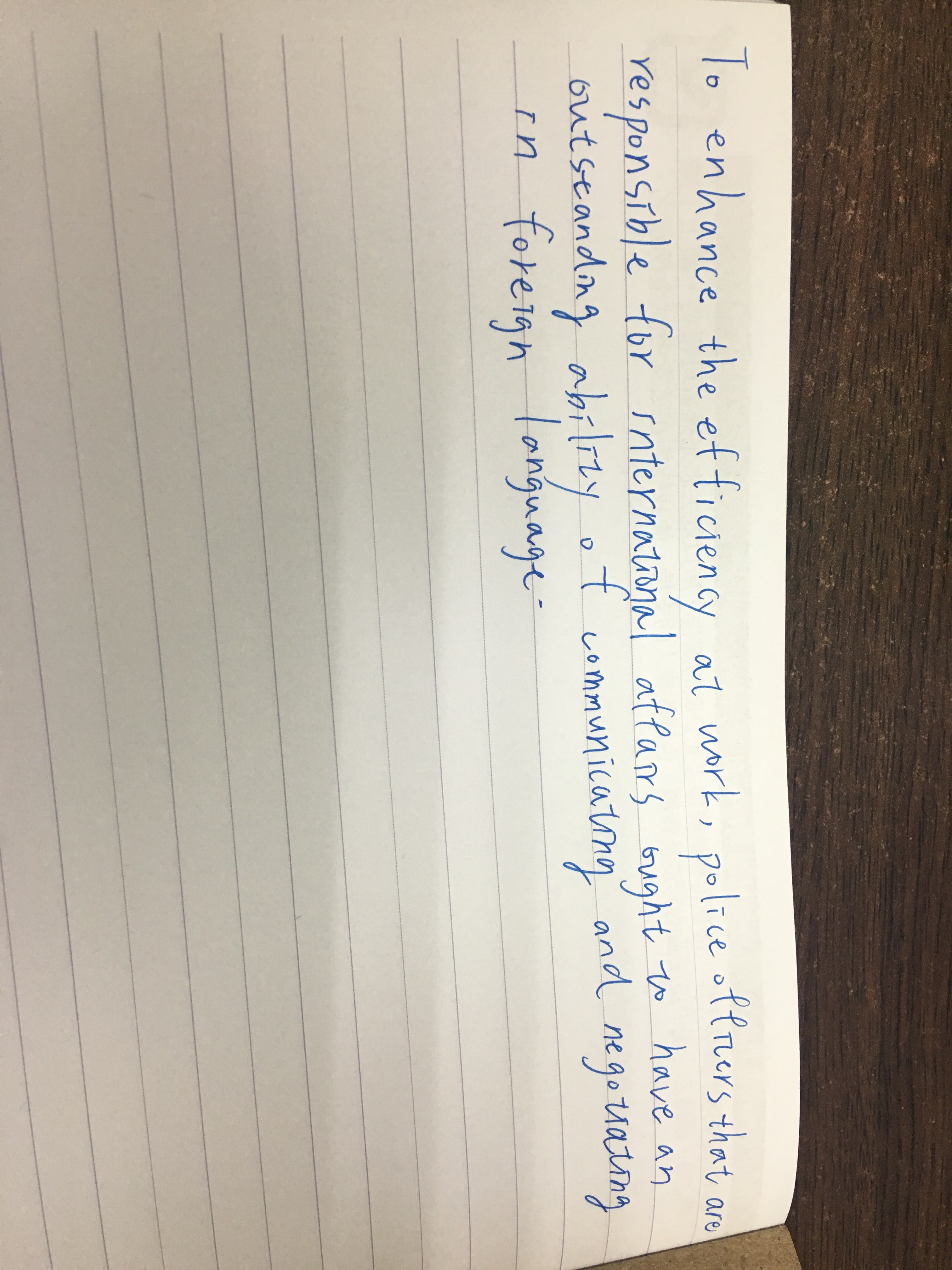 To improve the working efficiency, foreign affairs police officers are supposed to be able to communicate in foreign language fluently.