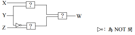 ⑵當輸出為(W = 0)時,請列出線路圖之所有可能的輸入資訊組?(10 分)