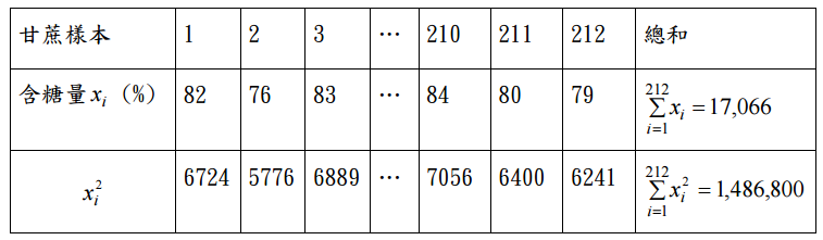 三、某調查員擬調查某農場改良種甘蔗的含糖量,但不知甘蔗的總株數 N,致不宜採用 簡單隨機抽樣,故決定改用”7 取 1”的系統抽樣。表列資料是所抽甘蔗樣本的含糖百 分比(%),列表於下: