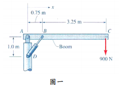 一、如圖一所示之工廠吊桿橫樑 AC 由 A 處銷接(pinned)及 B 處之油壓桿 DB 所支 撐,C 端承受 900 N 負載。