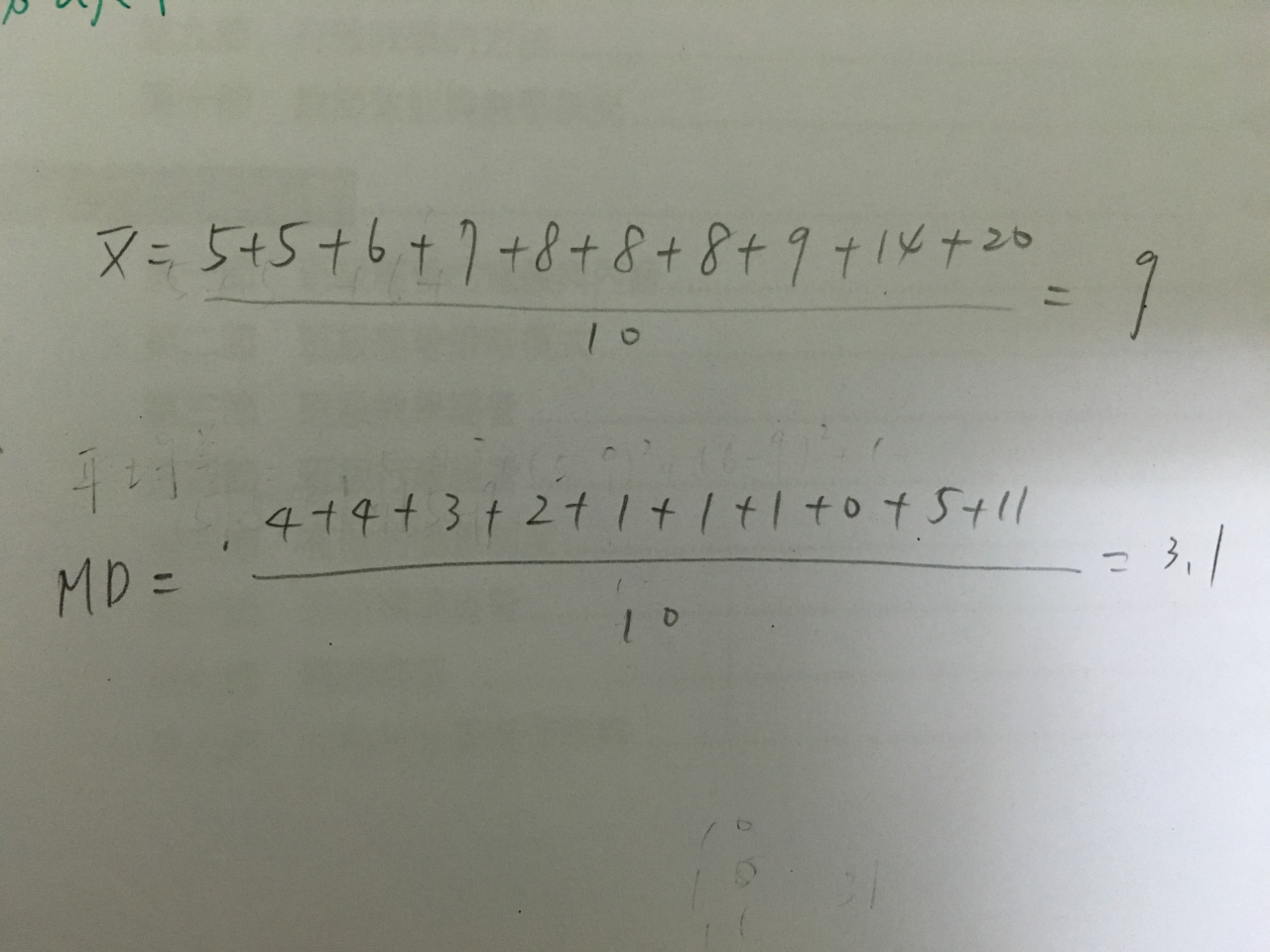 四、10 人之分數分別為 5, 5, 6, 7, 8, 8, 8, 9, 14, 20,求下列各數(須列出計算式):(30 分)