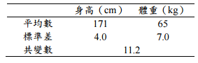 四、下表為 40 位大學男生在身高與體重上的數據。請回答下列問題: