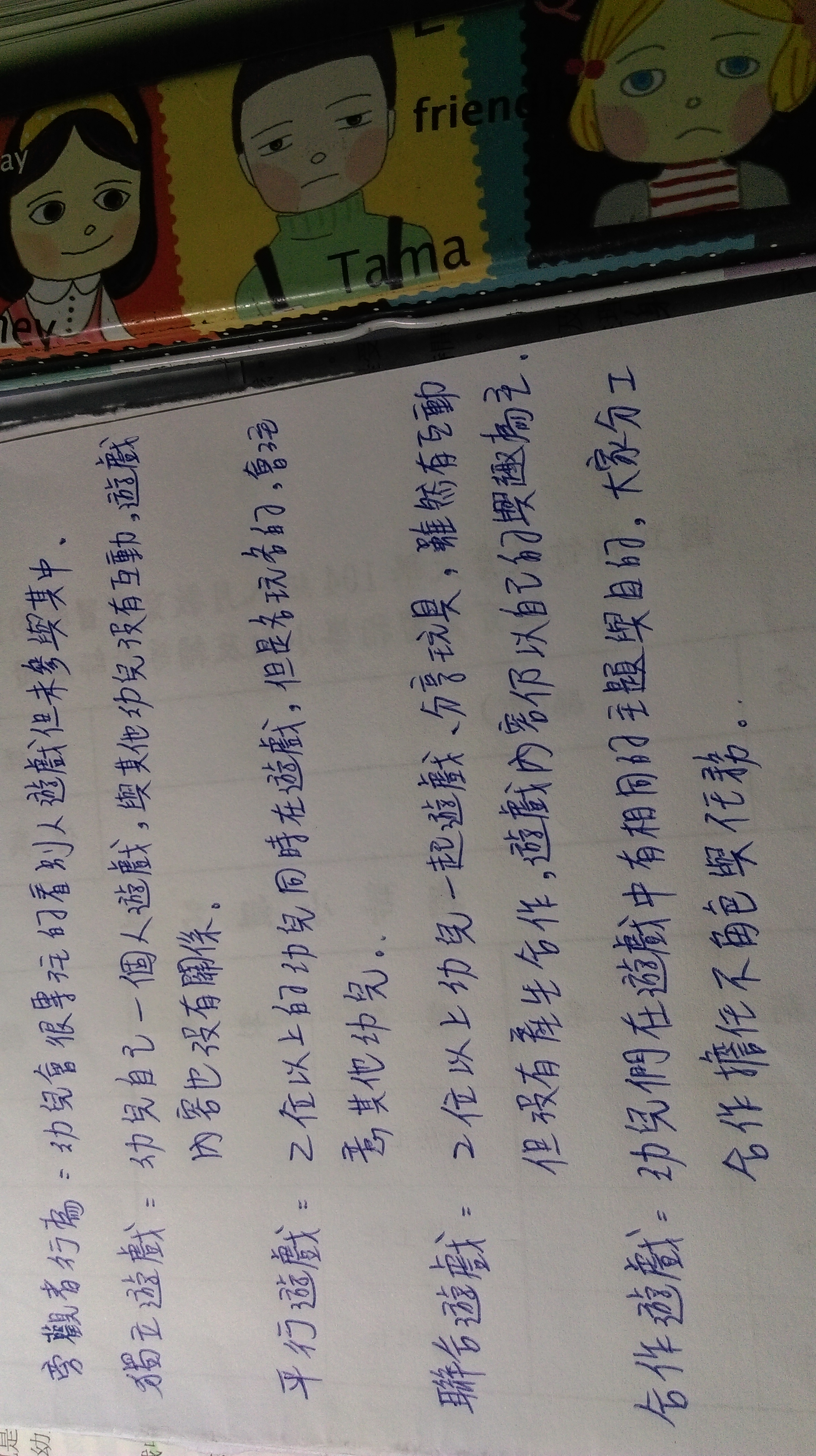 4 平行遊戲兒童仍然是獨自在玩,但他所玩的玩具同周圍兒童所玩的玩具是類似的,他在同伴旁邊玩,而不是與同伴一起玩。