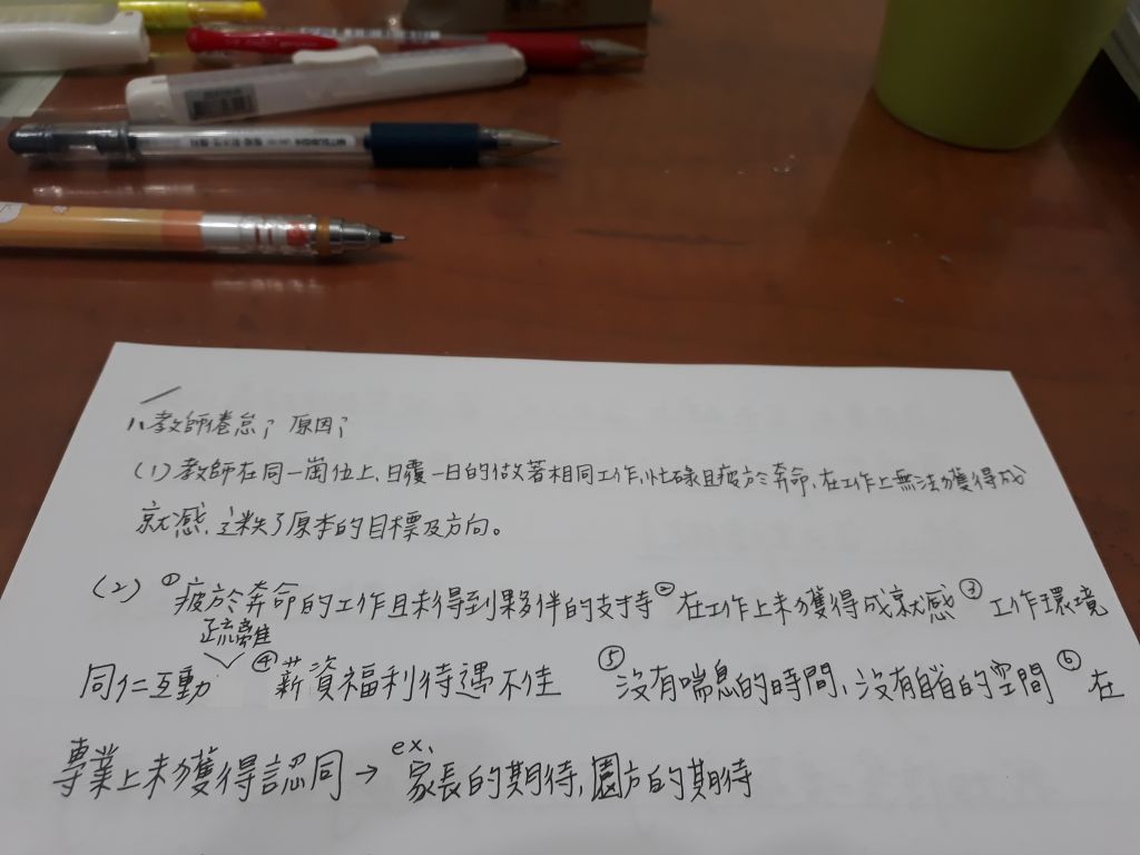 5)教師本身的上進心與積極度不足引發消極的態度,或是無法找到適當的抒發管道