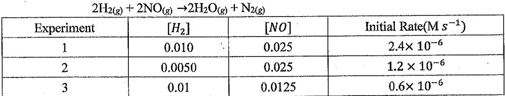 The following data were collected for the reaction between hydrogen and nitric oxide at 700°C: